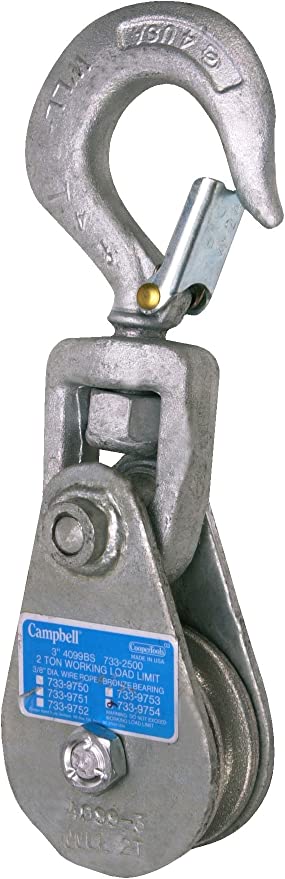 Campbell 3073V 6" Single Steel Drop Link Snatch Block with Stiff Swivel V Latch Hook