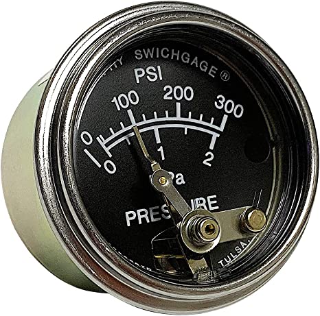 - The 20P-300 Pressure Swichgage instrument has a 2 inch (51 mm) dial, and a pressure range of 0-300 psi. The gage mechanism is enclosed in a steel case coated to resist corrosion, and utilizes a polycarbonate break-resistant lens and a polished stainless steel bezel to help protect this rugged instrument.
