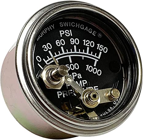 - The 20PW7-150 Water Pressure Swichgage is a 2" dial, diaphragm-actuated pressure-indicating gage with a built-in electrical limit switch. This dual-scale instrument is designed specifically to monitor water pump pressure and features a lockout button and a range of 0-150 psi.