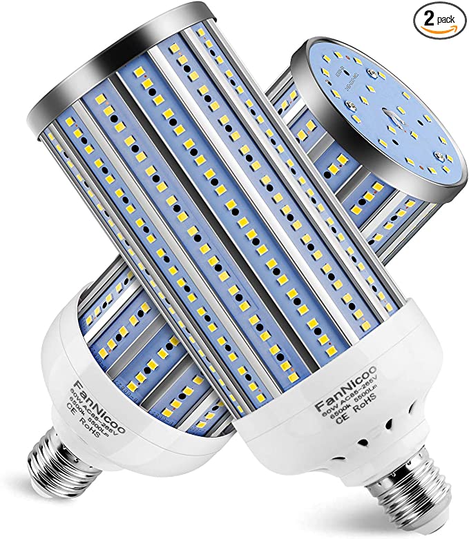 - 【Energy-Saving】:FanNicoo 60W LED corn lamp is equivalent to 500W incandescent lamp, which can help you save more electricity; Ultra-high power output of up to 6000 lumens, 360° all-angle omnidirectional lighting, covering a larger area.